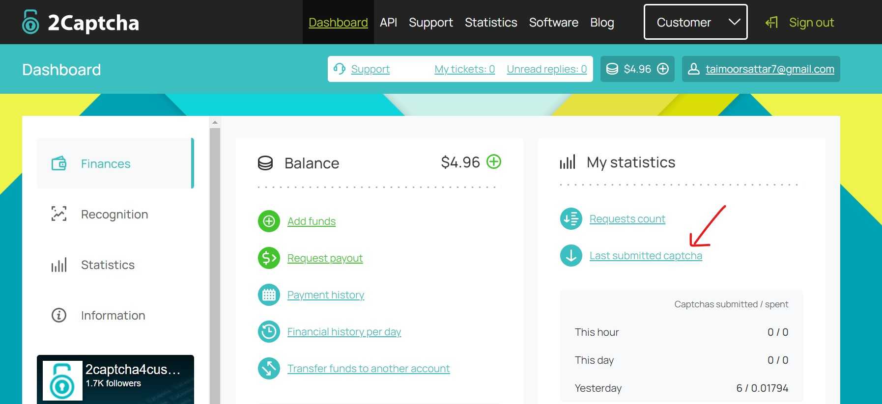 Also, You can also check for the last submitted captcha from the 2captcha dashboard. For that, navigate to the page as marked below.
